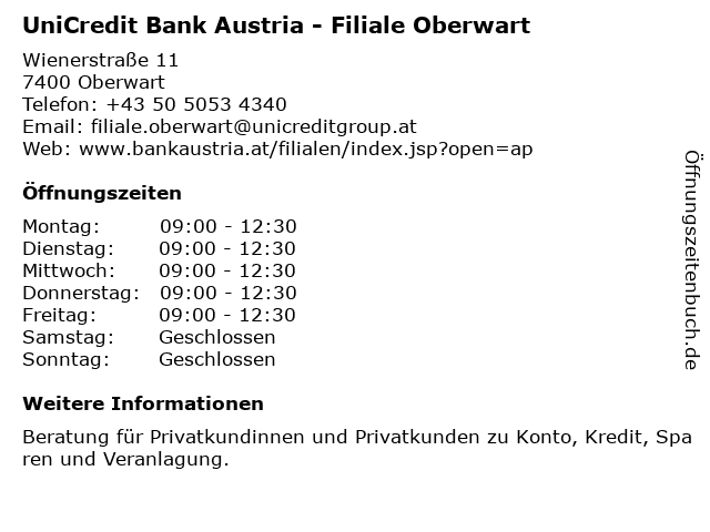 Branchen & Suchbegriffe zu UniCredit Bank Austria - Filiale Oberwart:austria, bank, oberwart, privatkundinnen und privatkunden, unicredit |