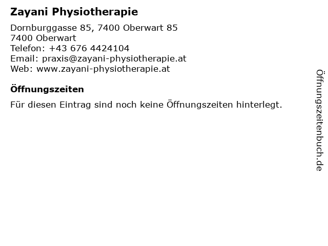| Öffnungszeiten Zayani Physiotherapie in Oberwart anzeigen | |