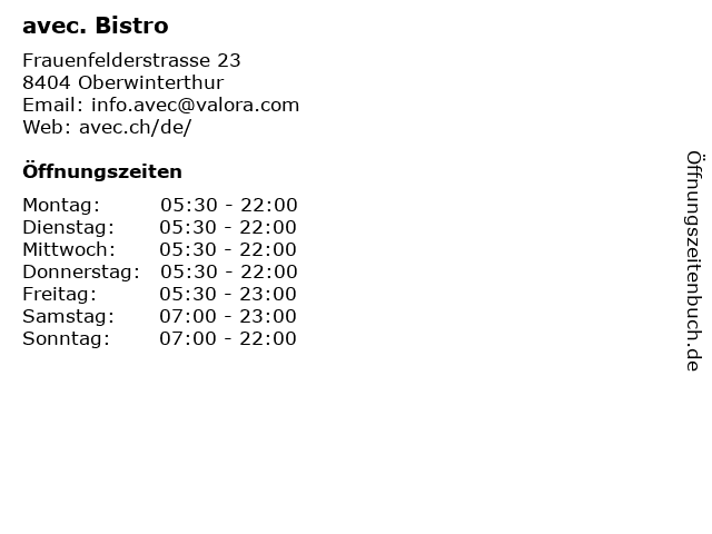 | Öffnungszeiten avec. Bistro in Oberwinterthur anzeigen | |