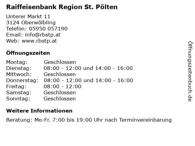 Branchen & Suchbegriffe zu Raiffeisenbank Region St. Pölten:abheben, aktien, bankstelle, beratung, devisen, finanzen, geld wechseln, geldautomat, oberwölbling, pölten, raiffeisen, raiffeisenbank, region, sparen, vermögen, vorsorge |