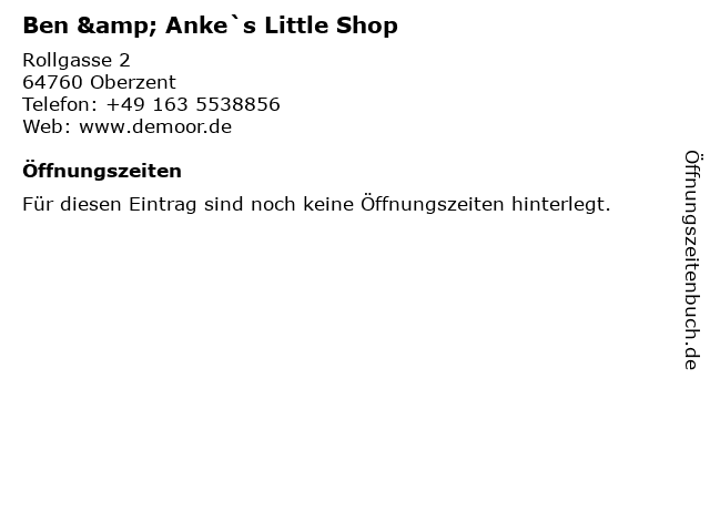 | Adresse Ben & Anke`s Little Shop in Oberzent anzeigen |