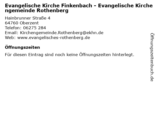 | Evangelische Kirche Finkenbach - Evangelische Kirchengemeinde Rothenberg anrufen | |