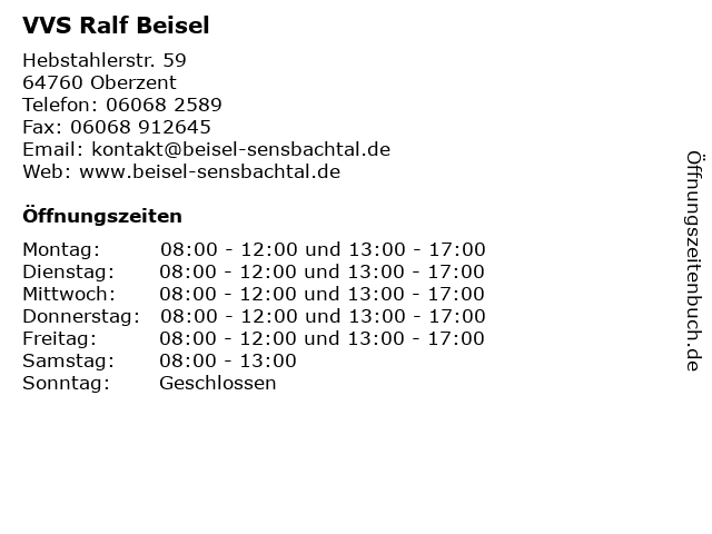 Öffnungszeiten VVS Ralf Beisel in Oberzent anzeigen | |