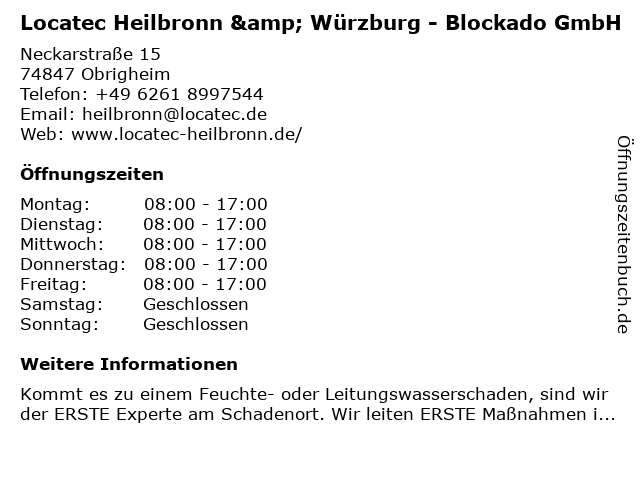 Branchen & Suchbegriffe zu Locatec Heilbronn & Würzburg - Blockado GmbH:blockado, feuchte wand, feuchteschaden, leck, leckage, leckortung, leckortung am flachdach, leckortung im außenbereich, leckortung in gebäuden, leitungswasserschaden, locatec, nasse wand, ortungstechnik, rohrbruch, rohrbruch notdienst, rohrbruchortung, wasserschaden, wasserschaden melden |