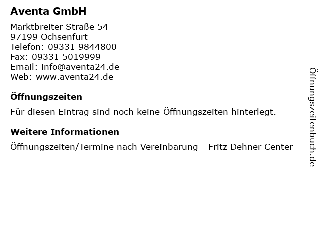| Öffnungszeiten Aventa GmbH in Ochsenfurt anzeigen | |