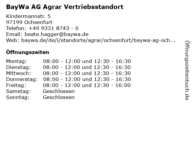 Öffnungszeiten BayWa AG Agrar Vertriebsstandort