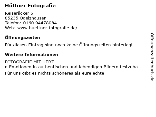 | Öffnungszeiten Hüttner Fotografie in Odelzhausen anzeigen | |