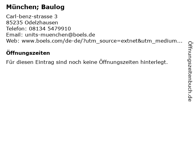 | Öffnungszeiten München; Baulog in Odelzhausen anzeigen | |