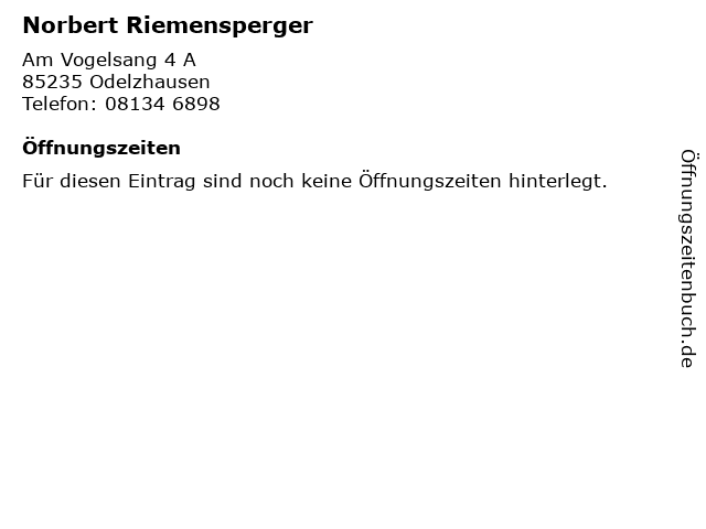 | Öffnungszeiten Norbert Riemensperger in Odelzhausen anzeigen | |