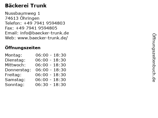 | Öffnungszeiten Bäckerei Trunk in Öhringen anzeigen | |