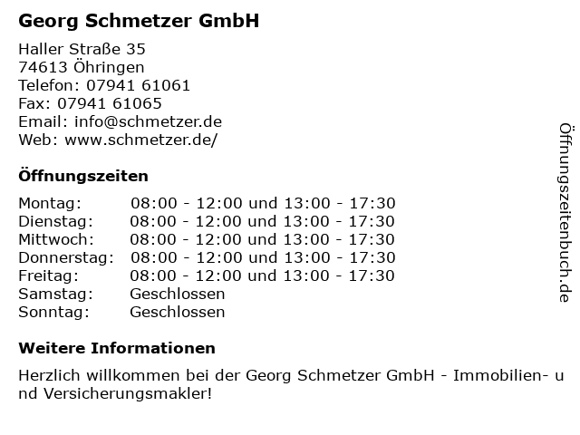 | Öffnungszeiten Georg Schmetzer GmbH in Öhringen anzeigen | |