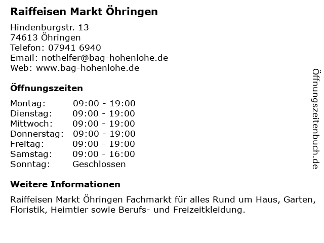 Öffnungszeiten Raiffeisen Markt Öhringen in Öhringen anzeigen | |
