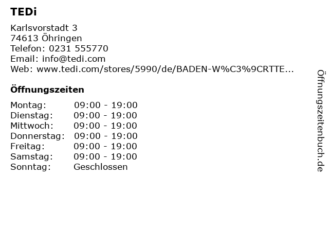 | Öffnungszeiten TEDi in Öhringen anzeigen | |