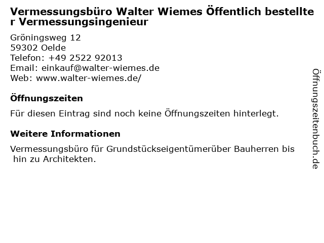 Öffnungszeiten Vermessungsbüro Walter Wiemes Öffentlich bestellter Vermessungsingenieur