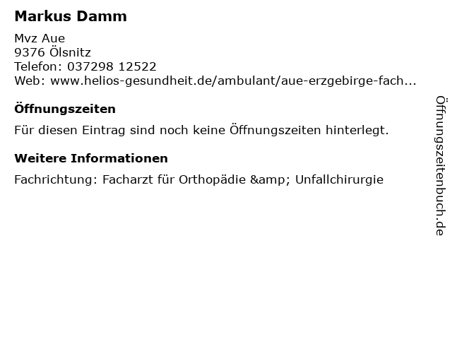 | Öffnungszeiten Markus Damm in Ölsnitz anzeigen | |
