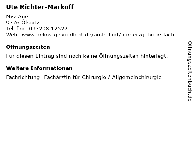 | Öffnungszeiten Ute Richter-Markoff in Ölsnitz anzeigen | |