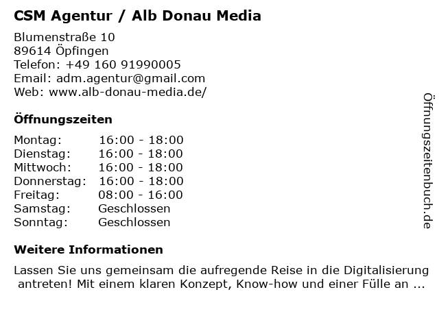 Branchen & Suchbegriffe zu CSM Agentur / Alb Donau Media:agentur, alb, app / web apps vermarktung, app entwicklung, app gestaltung, csm, digital lokal listing, donau, google unternehensprofil optimierung, kundenbindung, local listing, media, online listing, online marketing, online sichtbarkeit, online werbung, social media präsenz |