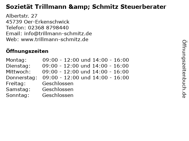 Branchen & Suchbegriffe zu Sozietät Trillmann & Schmitz Steuerberater:schmitz, sozietät, steuerberater, trillmann |