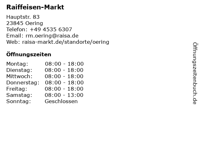 | Öffnungszeiten Raiffeisen-Markt in Oering anzeigen | |