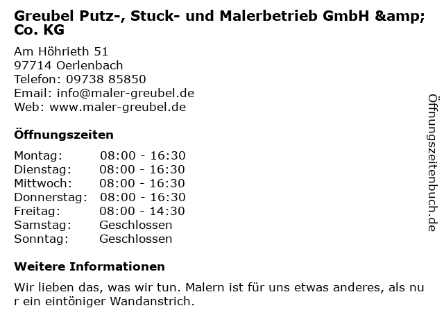 Branchen & Suchbegriffe zu Greubel Putz-, Stuck- und Malerbetrieb GmbH & Co. KG:greubel, malerbetrieb, putz, stuck |