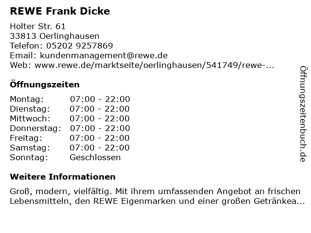 | Öffnungszeiten REWE Frank Dicke in Oerlinghausen anzeigen | |