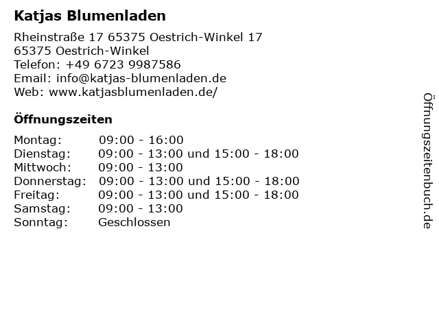 | Öffnungszeiten Katjas Blumenladen in Oestrich-Winkel anzeigen | |