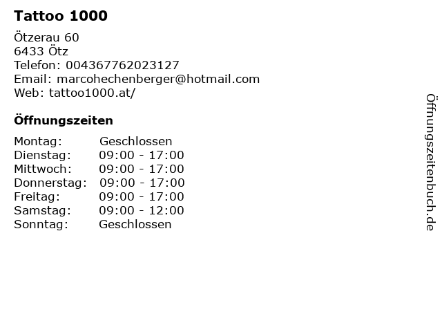 | Öffnungszeiten Tattoo 1000 in Ötz anzeigen | |