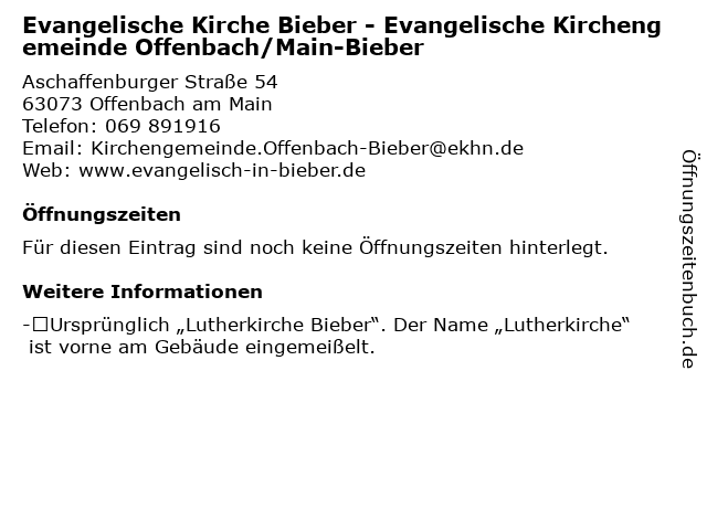 | Evangelische Kirche Bieber - Evangelische Kirchengemeinde Offenbach/Main-Bieber anrufen | |