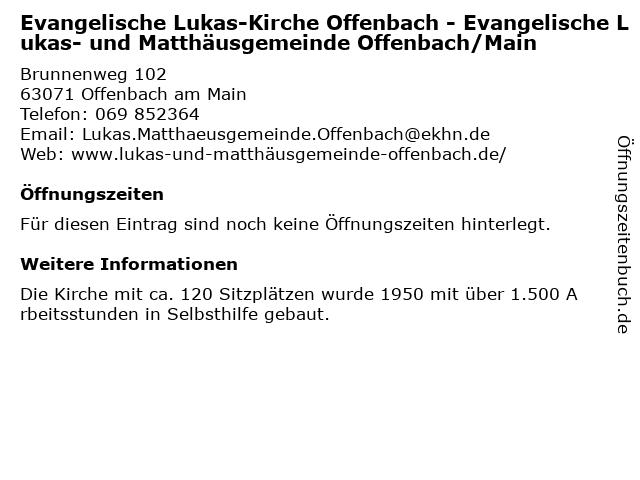 | Evangelische Lukas-Kirche Offenbach - Evangelische Lukas- und Matthäusgemeinde Offenbach/Main anrufen | |
