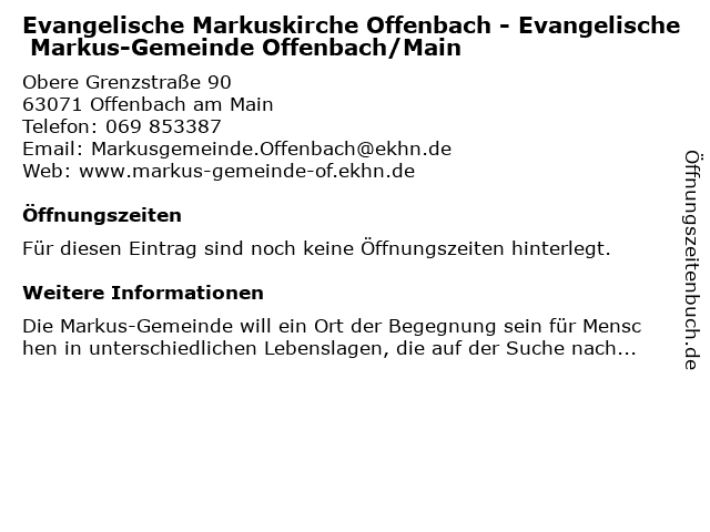 | Evangelische Markuskirche Offenbach - Evangelische Markus-Gemeinde Offenbach/Main anrufen | |