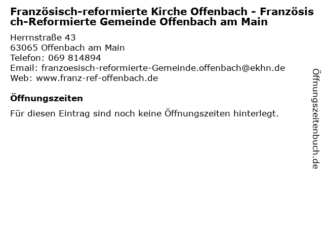 | Französisch-reformierte Kirche Offenbach - Französisch-Reformierte Gemeinde Offenbach am Main anrufen | |