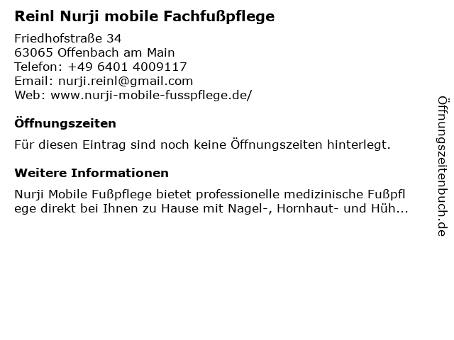 | Reinl Nurji mobile Fachfußpflege anrufen | |