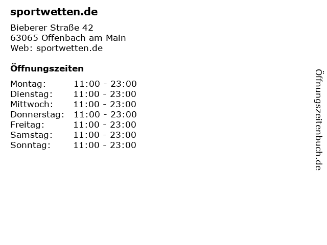 | Öffnungszeiten sportwetten.de in Offenbach am Main anzeigen | |