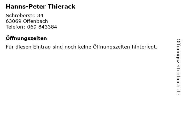 | Öffnungszeiten Hanns-Peter Thierack in Offenbach anzeigen | |
