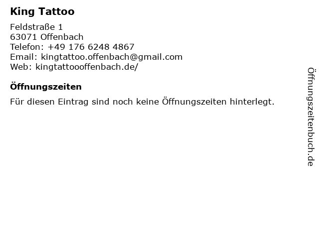 | Öffnungszeiten King Tattoo in Offenbach anzeigen | |