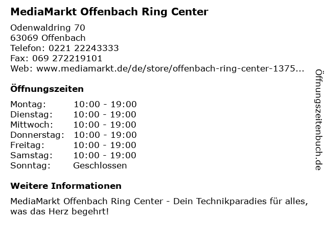 Branchen & Suchbegriffe zu MediaMarkt Offenbach Ring Center:center, mediamarkt, ring |