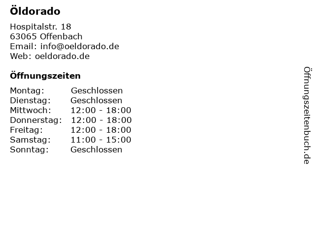 | Öffnungszeiten Öldorado in Offenbach anzeigen | |