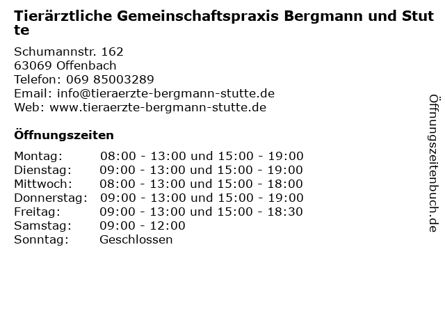 | Montag | 08:00-13:00 und 15:00-19:00 |
