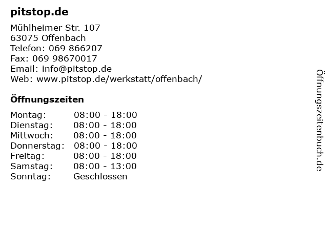 | Öffnungszeiten pitstop.de in Offenbach anzeigen | |