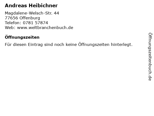 | Öffnungszeiten Andreas Heibichner in Offenburg anzeigen | |