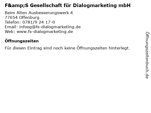 | F&S Gesellschaft für Dialogmarketing mbH anrufen | |