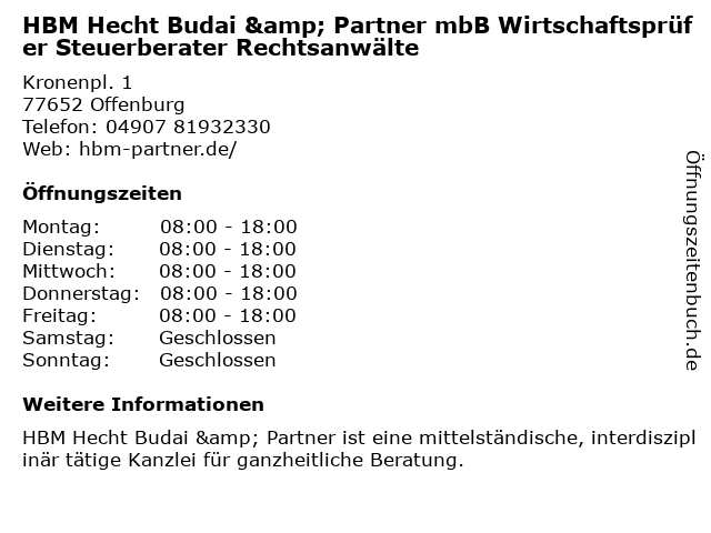 Branchen & Suchbegriffe zu HBM Hecht Budai & Partner mbB Wirtschaftsprüfer Steuerberater Rechtsanwälte:budai, hbm, hecht, mbb, partner, rechtsanwälte, schuldeneintreibungsdienste, steuerberater, steuerberatung, wirtschaftsprüfer |