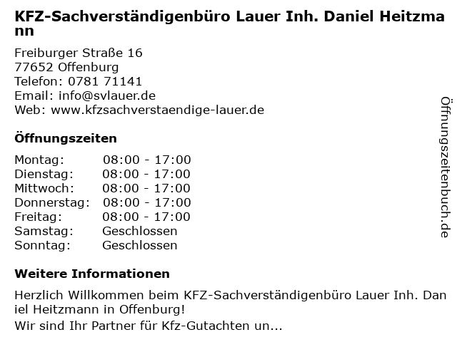 Branchen & Suchbegriffe zu KFZ-Sachverständigenbüro Lauer Inh. Daniel Heitzmann:daniel, heitzmann, kfz, lauer, sachverständigenbüro |