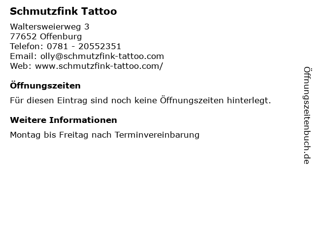 | Öffnungszeiten Schmutzfink Tattoo in Offenburg anzeigen | |