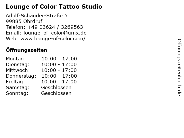 Branchen & Suchbegriffe zu Lounge of Color Tattoo Studio:color, dienste, ink, lounge, of, studio, tattoo, tattoostudio |
