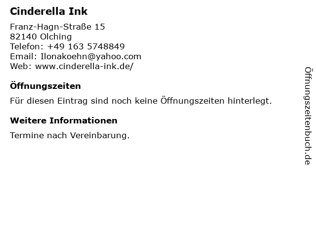 | Öffnungszeiten Cinderella Ink in Olching anzeigen | |