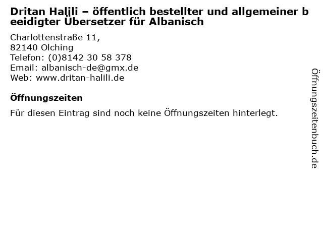 | Dritan Halili – öffentlich bestellter und allgemeiner beeidigter Übersetzer für Albanisch anrufen | |
