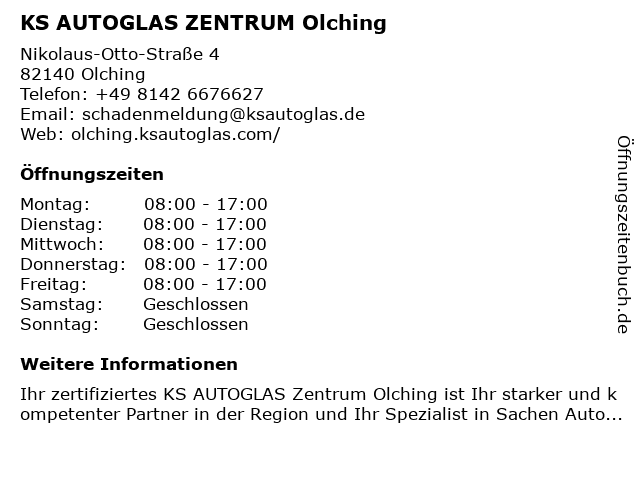 | Telefonnummer KS AUTOGLAS ZENTRUM Olching in Olching (+49 8142 6676627) anrufen | |