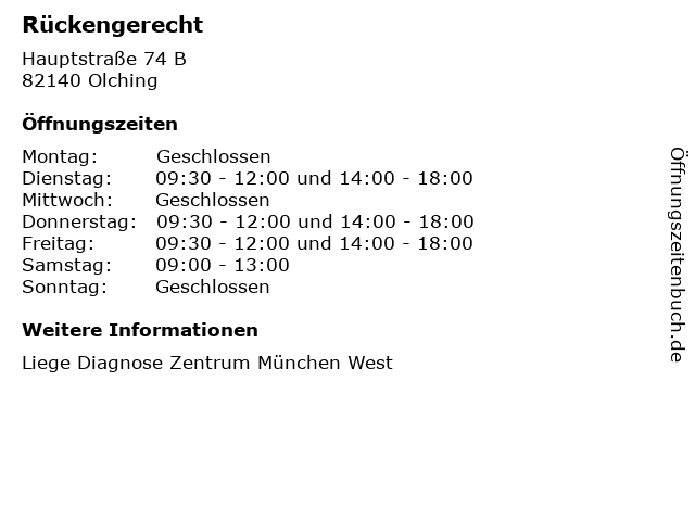 | Öffnungszeiten Rückengerecht in Olching anzeigen | |