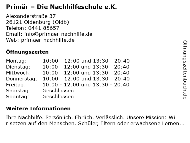 Branchen & Suchbegriffe zu Primär – Die Nachhilfeschule e.K.:bildungszentrum, e.k., nachhilfeschule, primär, – |